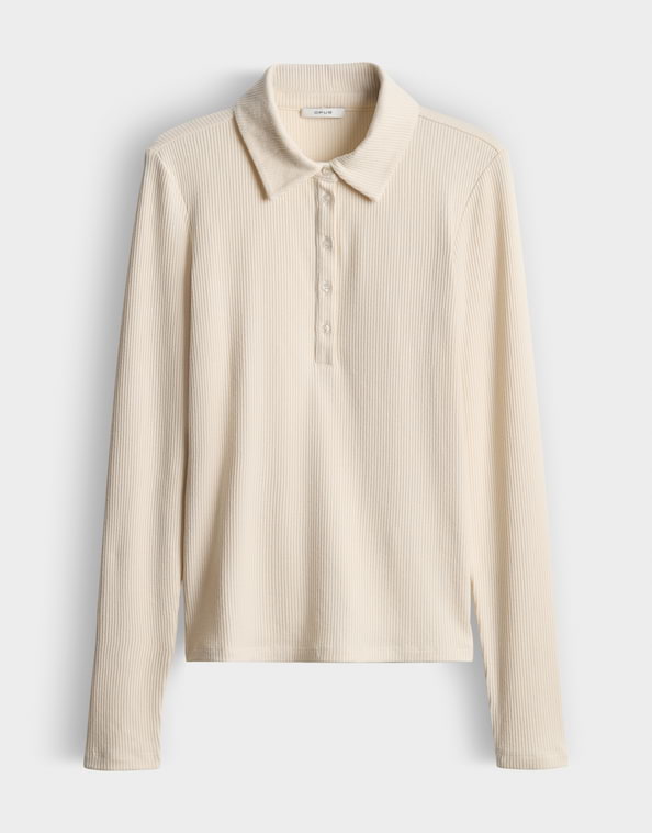 Jersey shirt van Opus in een ribstructuur met lange mpouwen en een polokraag voorzien van korte knoopsluiting.