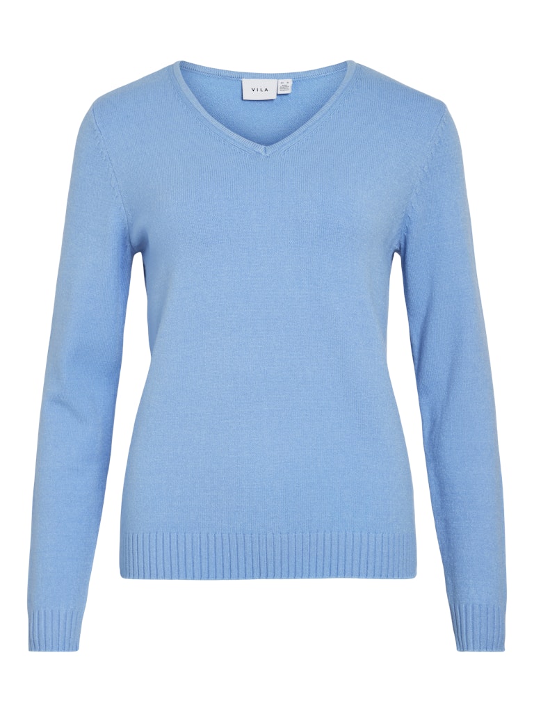 Gebreide trui van Vila met lange mouwen, V-hals en ribgebreide boorden. Materiaal: Viscose 50%| nylon 27%| polyester 23%