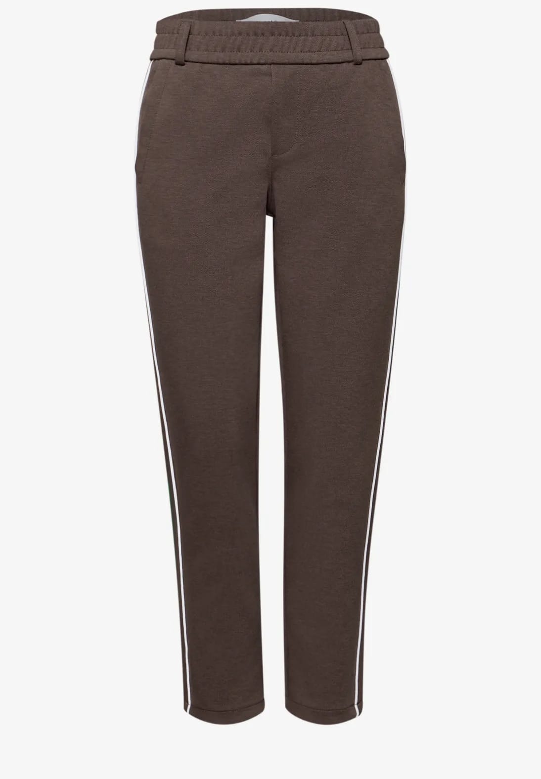 Enkellange broek van Street One in een piqué structuurstof met tapedetails, elastische tailleband, riemlussen, steekzakken en paspelzakken aan de achterzijde.