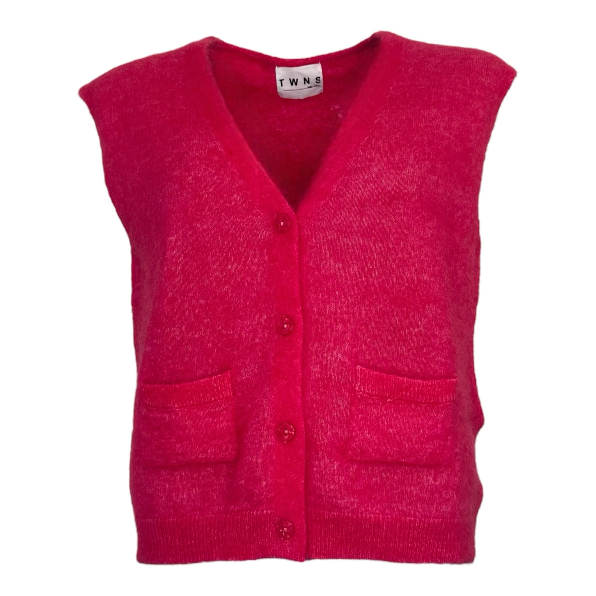 Gilet van Twins the Label met een V-hals, knoopsluitig, opgestikte zakken en ribgebreide boorden.