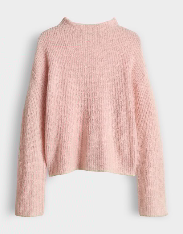 Luchtige gebreide trui van Opus in 3D-look met lange mouwen, verlaagde schoudernaden, opstaande kraag en ribgebreide boorden.