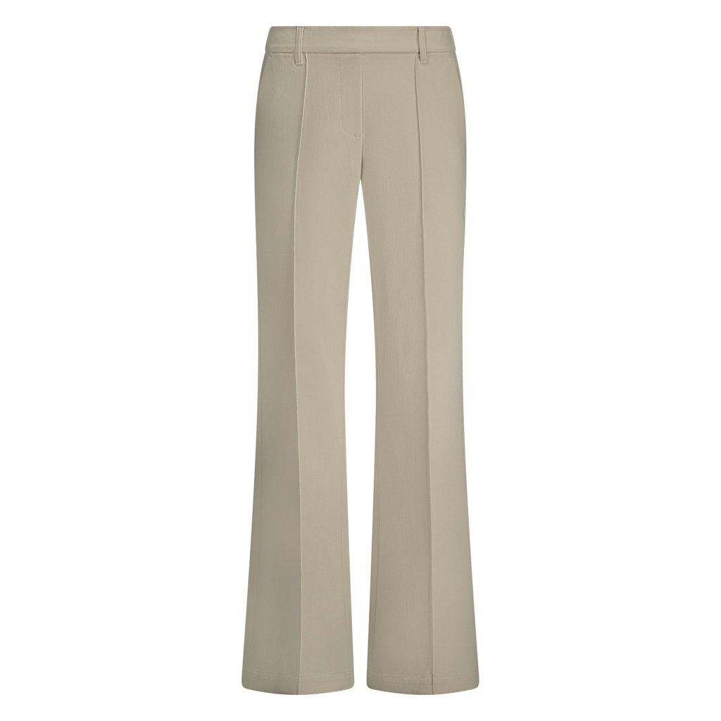 Broek van Nukus met wijde pijpen, steekzakken, gestikte naad aan de voorzijde, twee paspelzakken en een elastische tailleband aan de achterzijde. Materiaal: Polyester 63%| viscose 33%| spandex 4%