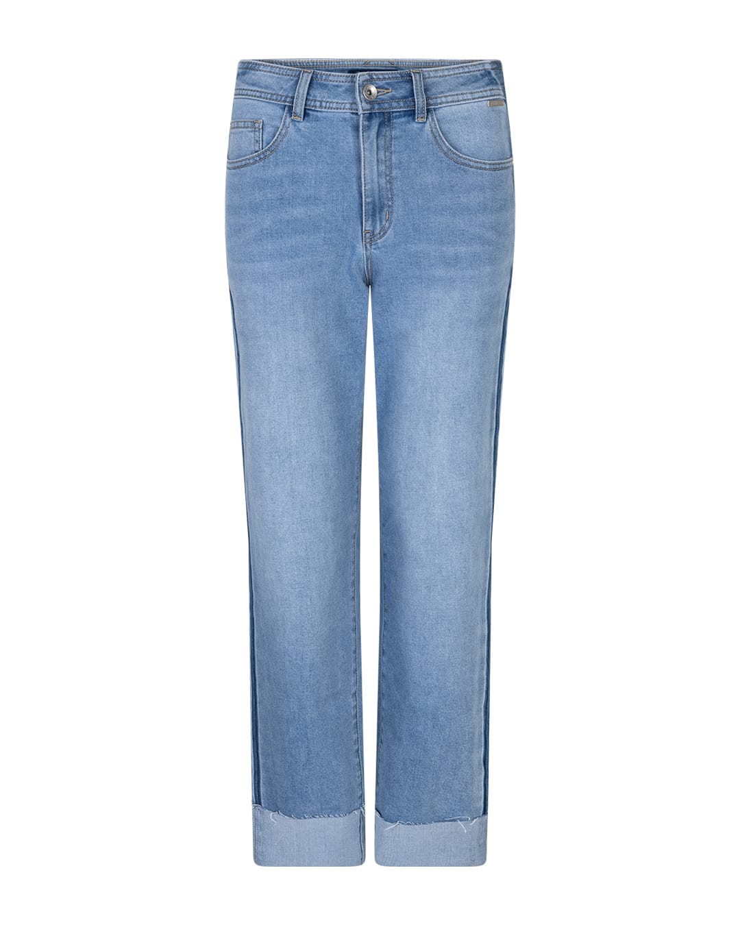 5-pocket jeans van Red Button met een knoop- en ritssluiting en rechte pijpen voorzien van omslag en contrasterende zijnaden.