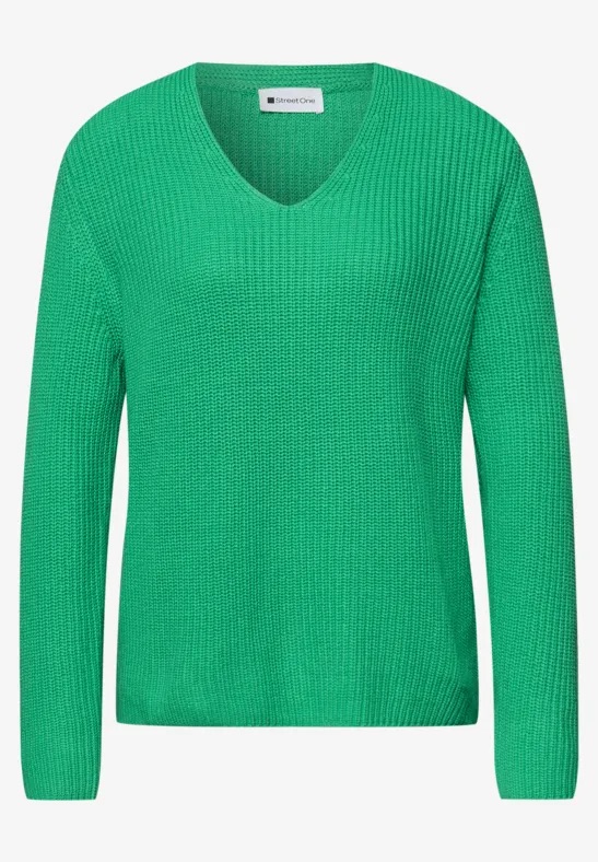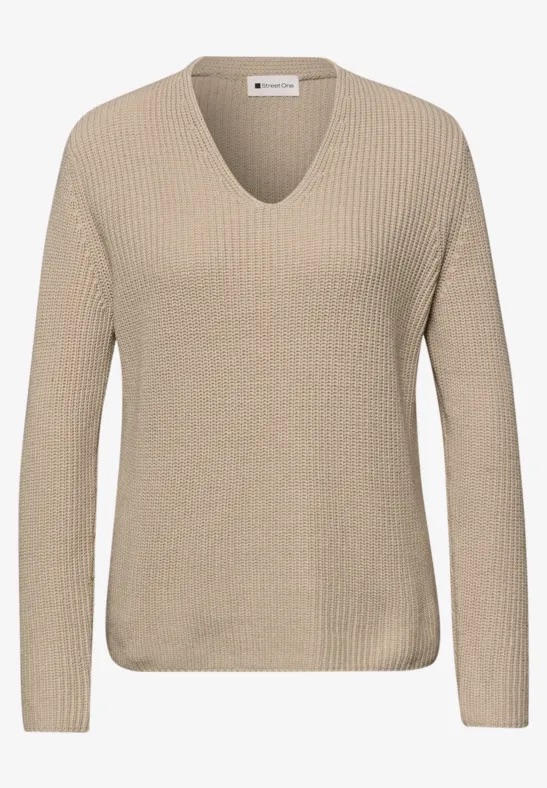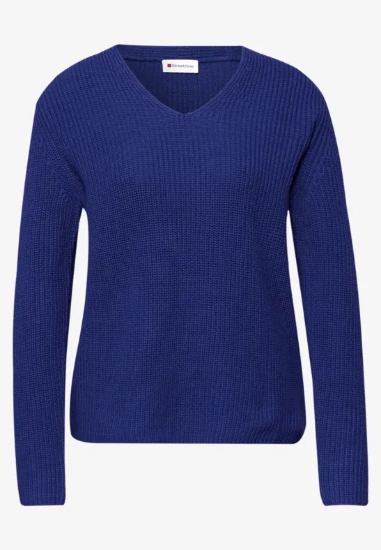 Trui van Street One in een ribstructuur met lange mouwen en een V-hals. Materiaal: Katoen 60%| acryl 40%