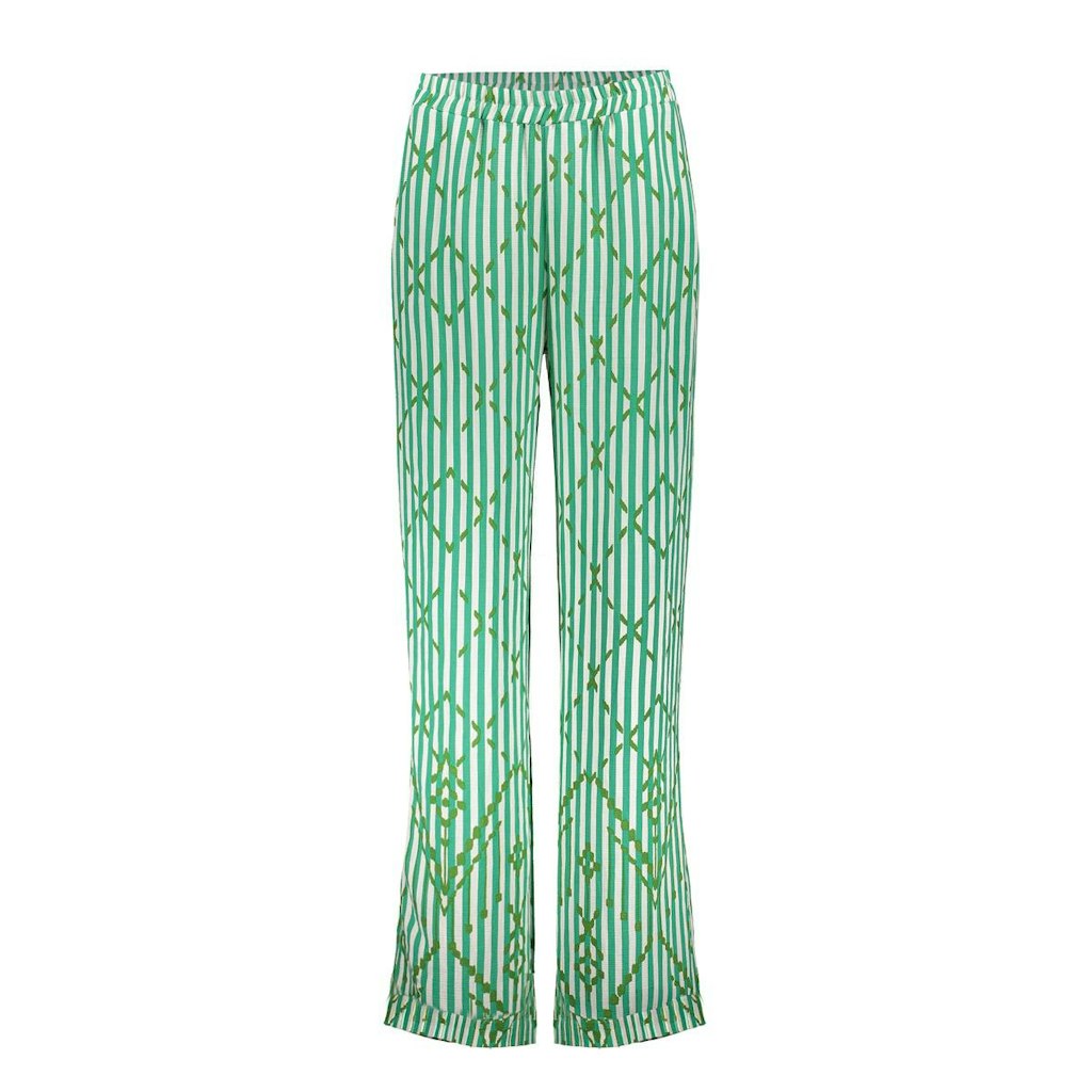 Broek van Geisha in een all-over dessin met wijde pijpen, elastische tailleband en steekzakken. Materiaal: Ecovero viscose 86%| polyamide 14%