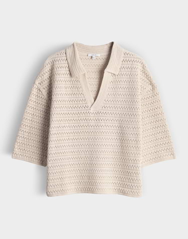 Gehaakte trui van Opus met halflange mouwen, polokraag en een V-hals. Materiaal: Katoen 100%