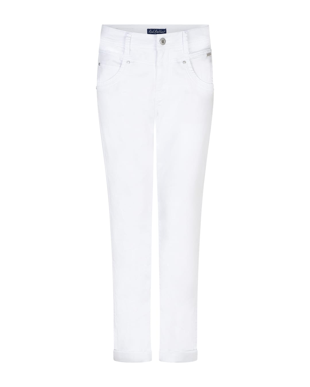 5-pocket tapered-fit broek van Red Button met een hoge taille, knoop- en ritssluiting en omslag in de pijpen. Materiaal: Bio katoen 77%| recycled polyester 22%| elastan 1%