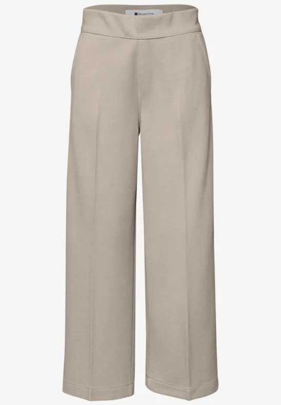 Enkellange, jersey piqué broek van Street One met wijde pijpen, steekzakken, twee paspelzakken en een elastische tailleband aan de achterzijde.