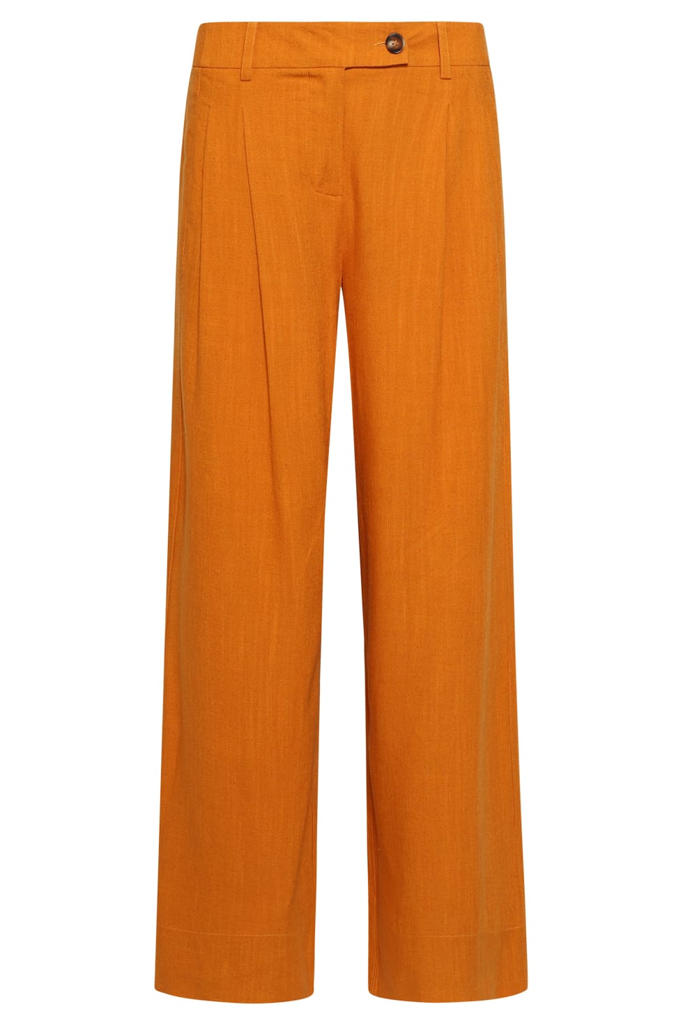 Broek van Smashed Lemon met wijde pijpen, knoop- en ritssluiting, bandplooien en steekzakken.