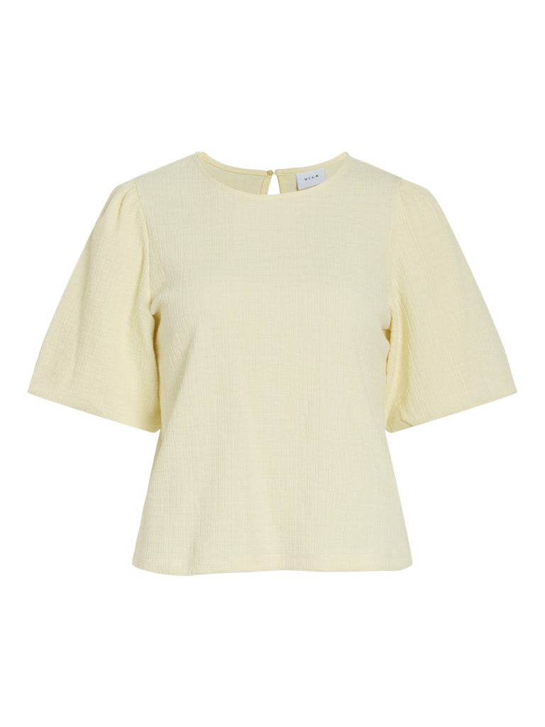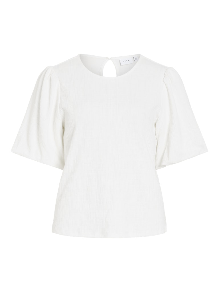 Shirt van Vila met korte pofmouwen en een ronde hals voorzien van keyhole met knoopsluiting aan de achterzijde.