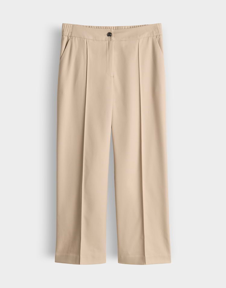 Enkellange broek van Opus met rechte pijpen, knoop- en ritssluiting, steekzakken en twee paspelzakken en een elastische tailleband aan de achterzijde. Materiaal: Polyester 77%| viscose 21%| elastan 2%