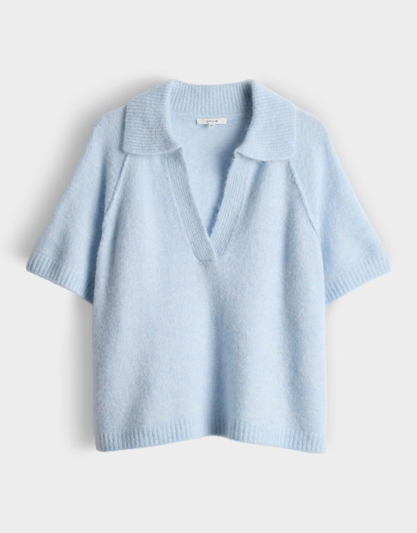 Zacht gebreide trui van Opus met halflange raglanmouwen, kraag, V-hals en ribgebreide boorden.