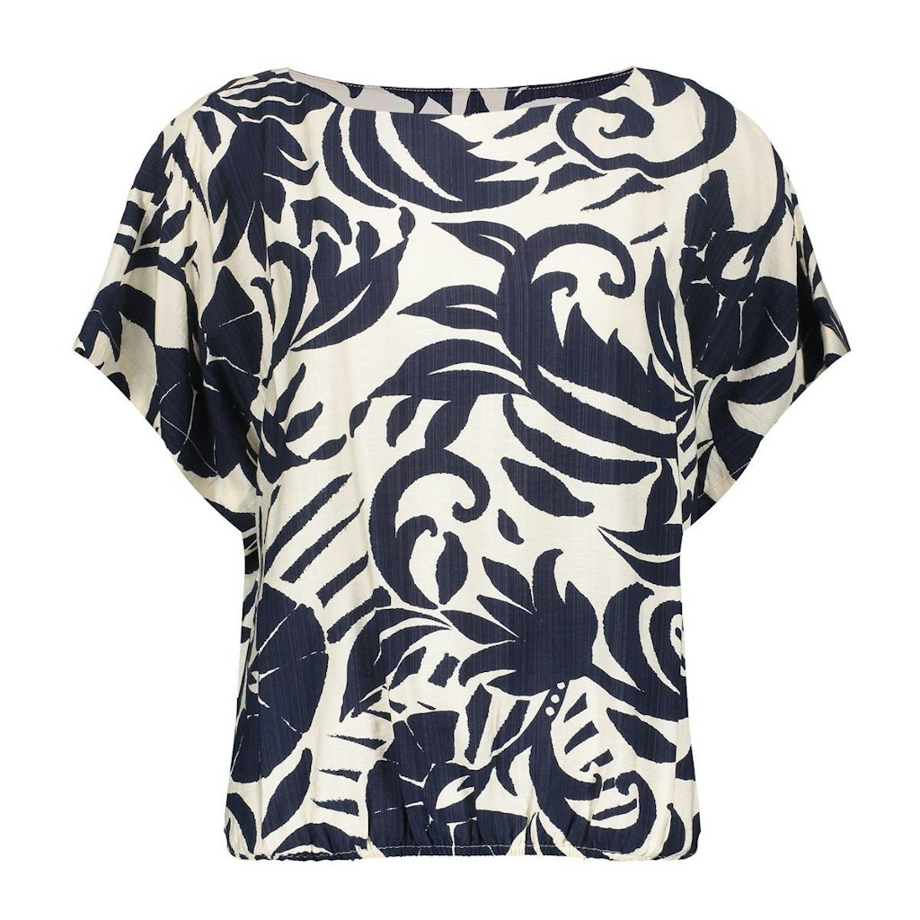 Top van Geisha in een all-over dessin met korte aangeknipte mouwen, boothals en een elastische zoom. Materiaal: Viscose 90%| polyamide 10%