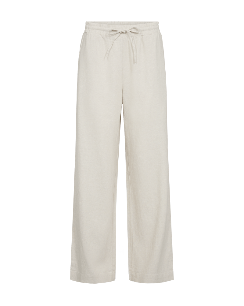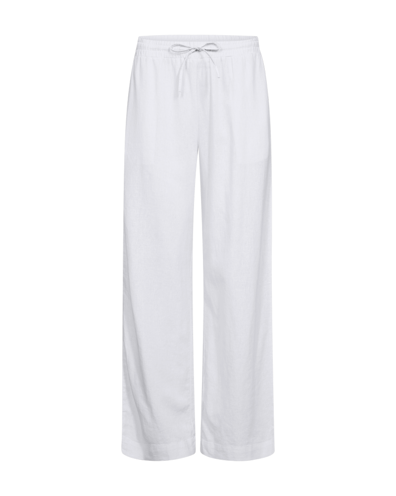 Linnen broek van Freequent met wijde pijpen, steekzakken en een elastische tailleband voorzien van trekkoord. Materiaal: Linnen 555| viscose 45%