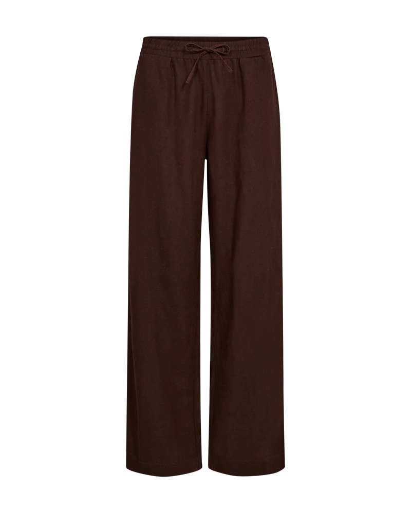 Linnen broek van Freequent met wijde pijpen, steekzakken en een elastische tailleband voorzien van trekkoord. Materiaal: Linnen 55%| viscose 45%