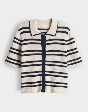 Gestreept vest van Opus in een gehaakte look met halflange mouwen, kraag en een knoopsluiting. Materiaal: Katoen 72%| polyamide 28%