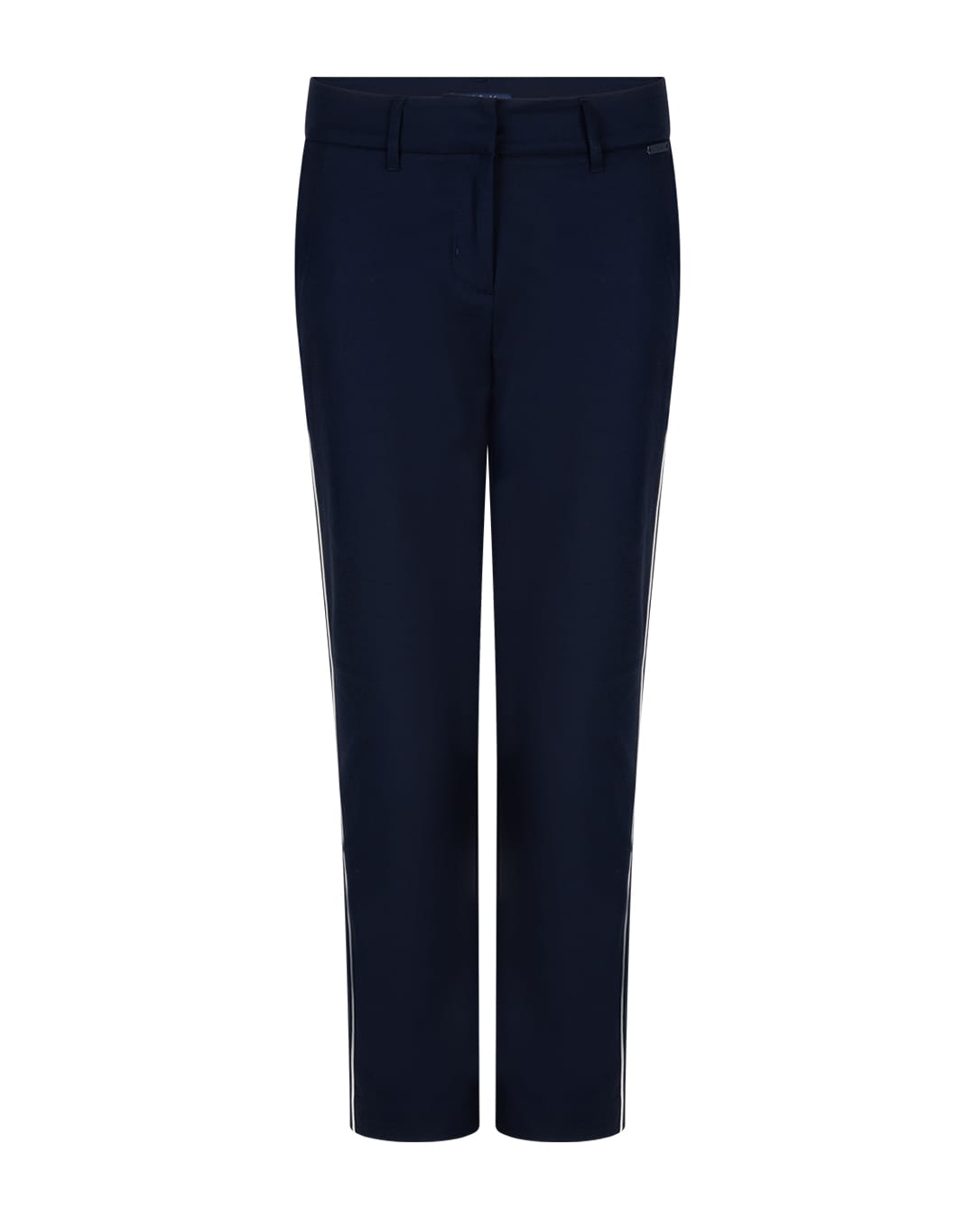 Regular fit broek van Red Button in een smart kwaliteit met taps toelopende pijpen voorzien van contrast bies aan de zijnaden, verborgen knoop- en ritssluiting, steekzakken en twee paspelzakken aan de achterzijde.