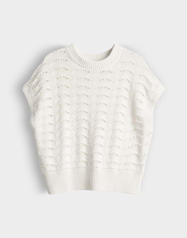 Ajour gebreide trui van Opus met korte aangeknipte mouwen, ronde hals en ribgebreide boorden. Materiaal: Katoen 100%