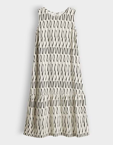 Mouwloze midi-jurk van Opus in een grafische print met een ronde hals, keyhole voorzien van knoopsluiting aan de achterzijde en een volant aan de zoom.