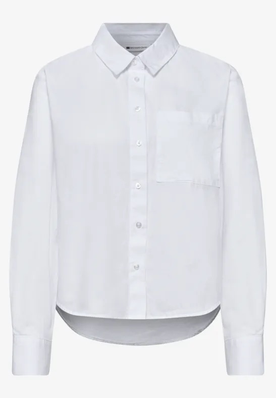 Blouse van Street One met lange mouwen, kraag, knoopsluiting, een opgestikte borstzak en een afgeronde onderzijde. Materiaal: Katoen 100%