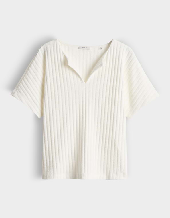Jersey shirt van Opus in een ribstructuur met korte aangeknipte mouwen, zijsplitten en een ronde hals voorzien van split.